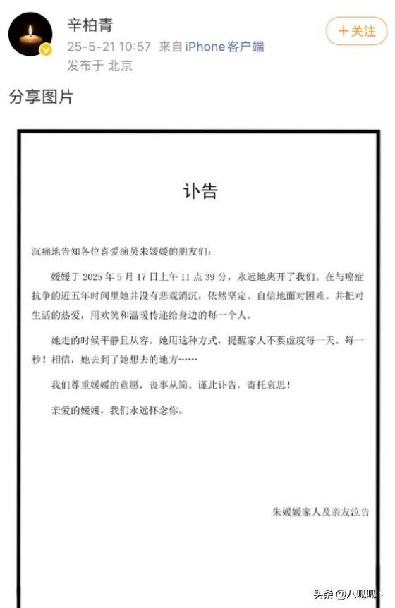 2025年5月,医院走廊里,辛柏青紧握着妻子冰冷的手,指节苍白几乎透明。护士轻声宣布“抢救无效”的那一刻,曾在《白塔之光》中演绎过“毫米级崩溃”的影帝,竟然连哭都无法发出声音,只有肩膀无法控制地剧烈颤抖。五天后,他在社交平台上发布了妻子的讣告,字里行间充满了克制的温柔:“她与癌症抗争近五年,始终把欢笑传给身边的人。”那条动态配图是一张空白的蜡烛表情包。