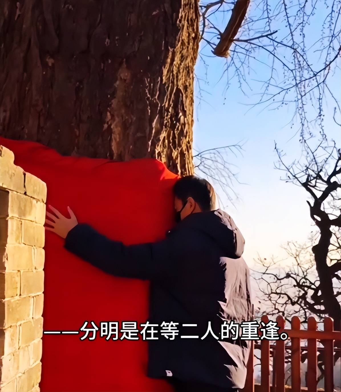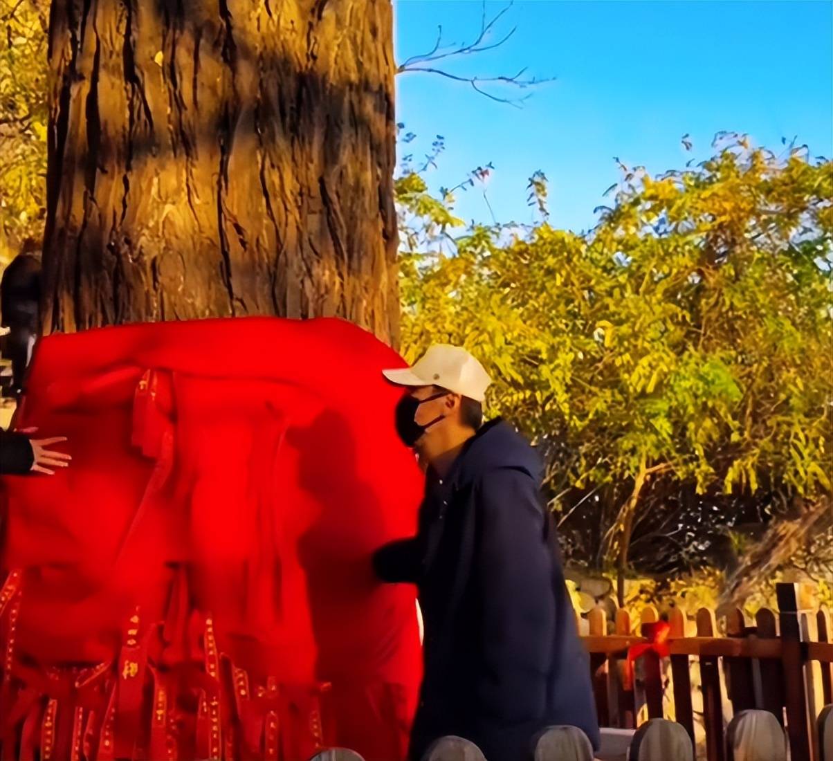 辛柏青静静地抱着树干祈祷了许久,身体一动不动,仿佛时间在此刻停滞,他的目光似乎穿越了时空,仿佛在等待着朱媛媛的归来,期待着那一刻的跨越时空重逢。除了绕树、抱树祈福外,辛柏青和李乃文还走到祈愿石前,俯身虔诚地跪拜,久久未曾离去。