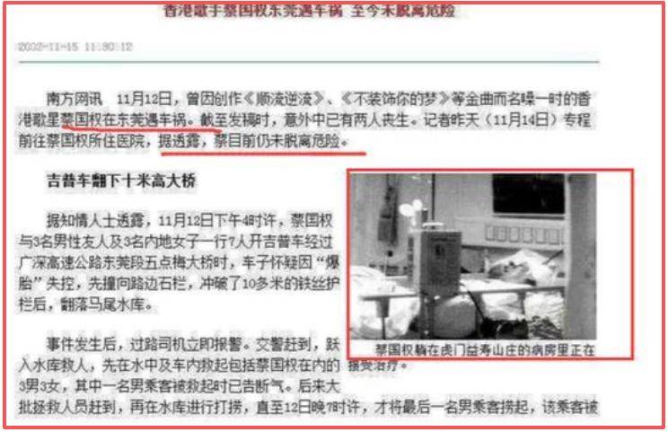 2002年11月13日,蔡国权乘坐的一辆前往深圳的汽车在广深高速的某个路段突然失控,偏离道路,飞越围栏,重重坠落至10米高的桥下。虽然落入水中,但这场事故造成了严重的伤亡。伤者中,包括蔡国权在内,有三人不幸死亡,四人重伤。医院诊断显示,蔡国权的伤势极为严重——颅骨挫伤、肺部出血、胸腔积血,他在昏迷中度过了漫长的治疗期。
