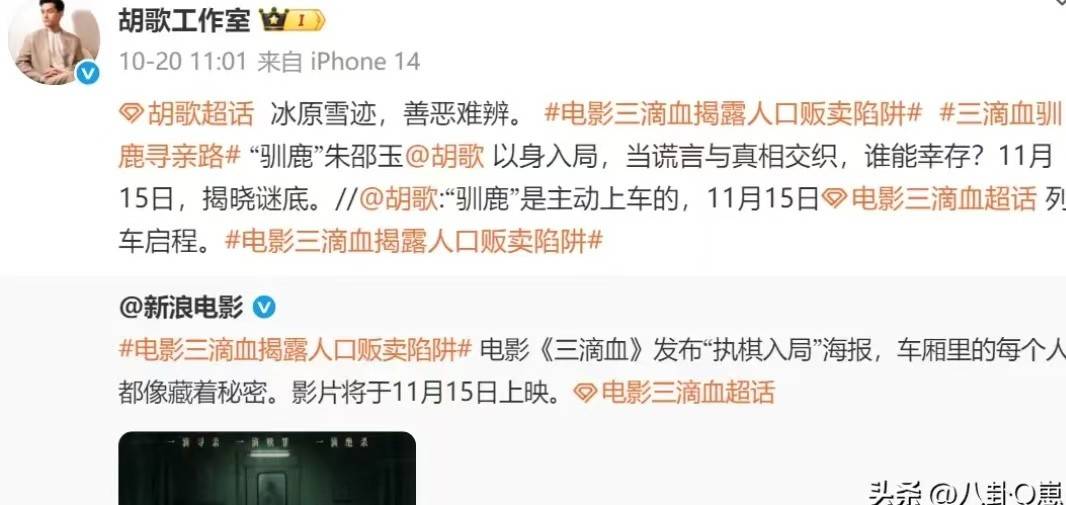 胡歌主演的《三滴血》即将在11月15日上映,这部电影虽然也与“打拐”相关,但与传统的打拐电影有所不同。在这部影片中,胡歌饰演的“驯鹿”曾因人口贩卖而入狱,出狱后却发现自己的孩子也被贩卖了。从一个加害者变成受害者,胡歌的角色在寻找孩子的过程中不得不重新潜入犯罪团伙,并最终完成“黑吃黑”的逆袭。尽管电影本身充满了沉重的话题,但胡歌的幽默和自嘲为影片增添了不少轻松的元素。