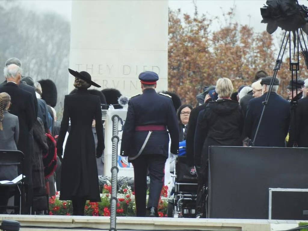 更重要的是,尽管梅根穿上了黑裙,试图与凯特王妃形成对比,但她并没有资格佩戴王室所认可的阵亡将士纪念胸花——“红色虞美人胸花”,这一标志性符号是王室成员才会佩戴的。而梅根的黑裙,怎能与凯特王妃的那件著名凯瑟琳·沃克黑色大衣相比?