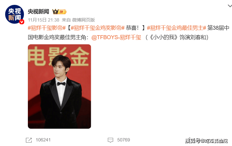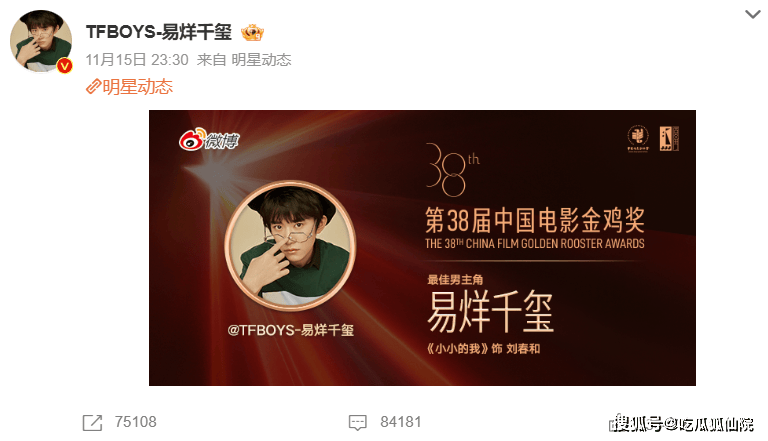 在阅读此文之前,辛苦您点击一下“订阅”,既方便您进行讨论和分享,又能给您带来不一样的参与感,感谢您的支持!11月15日晚,第38届金鸡奖颁奖典礼在厦门盛大举行,易烊千玺凭借在《小小的我》中对脑瘫少年刘春和的精彩演绎,一举斩获最佳男主角奖,成为金鸡奖首位00后影帝,同时也刷新了最年轻影帝的纪录。