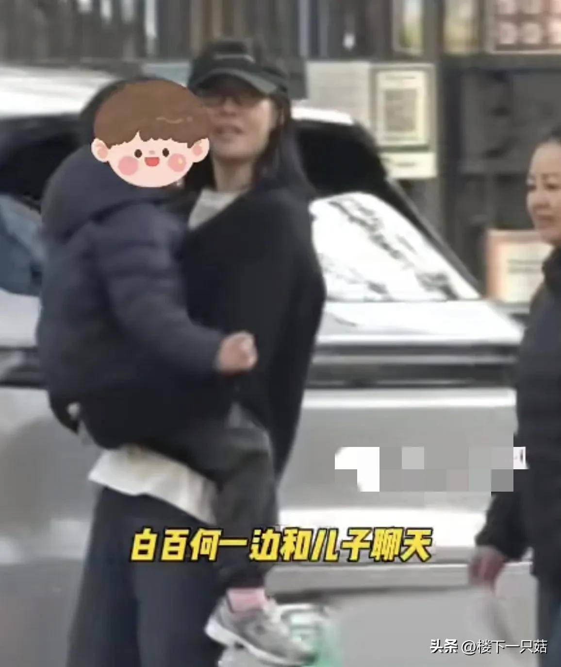 当天,白百何身穿一件黑色羽绒服,搭配牛仔裤和鸭舌帽,整体造型低调而休闲。她一边抱着儿子,聆听着孩子天真烂漫的语言,脸上不自觉地露出了笑容,看上去完全没有受到近期风波的影响。