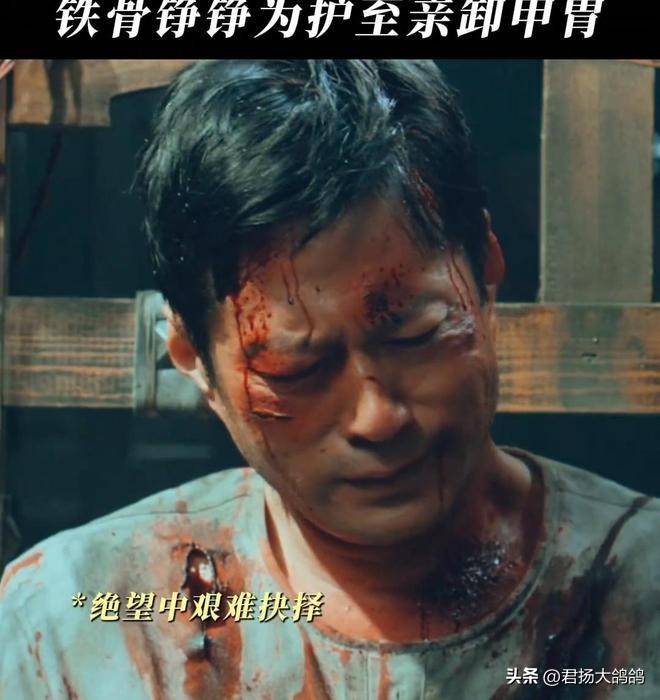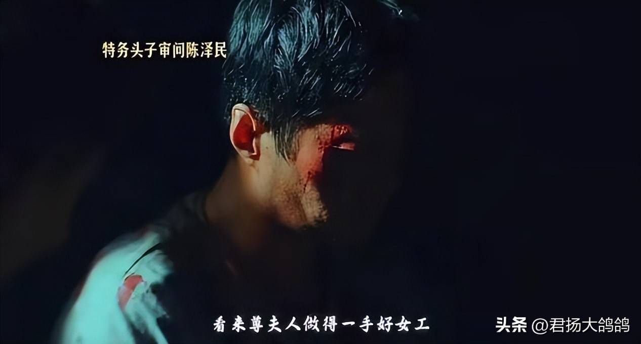 陈泽民,这个深陷两难抉择的男人,心中夹杂着信仰和家庭的重担,每一个决断都让人心碎。在与反派的对峙中,他在被绑在椅子上、满脸是伤时,坚毅的表情背后隐藏的是对家人的深深愧疚与不舍。当反派抛出“你妻子做的女红很精致”这一台词,陈泽民没有丝毫动容,只冷冷地回应:“我没有家人”。但这一切的假象很快被揭穿,反派发现他频繁购买新鲜水果,推断出陈泽民家中有一个孩子。果不其然,妻儿被带入房间,看到小女儿哭喊着喊爸爸时,陈泽民的脸上从坚定转为焦虑与痛心。谭凯精准捕捉了陈泽民内心的撕裂,将那种夹杂着信念与愧疚的痛苦展现得淋漓尽致。特别是在他喊出“我说”那一瞬间,既有背叛同袍的愤恨,也有父亲不忍孩子受牵连的无奈,让观众既心疼又生气。