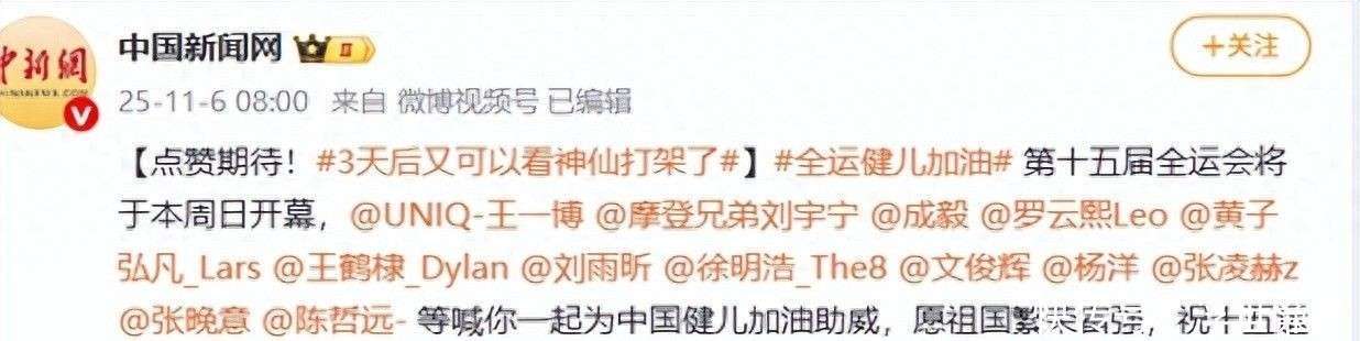 这一天在刷微博时,我差点被一个热搜给逗笑了——原来是王一博、刘宇宁、成毅这些顶级流量明星被官方拍摄了一段“全运会加油视频”。这次没有美颜滤镜,大家的真容完全暴露在高清镜头下,这些“内娱顶流”也一度令人有种“见光死”的感觉。