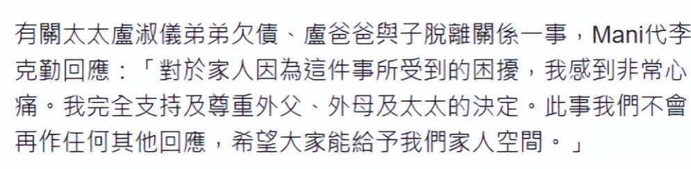 李克勤回应岳父和妻弟断绝关系:完全支持及尊重相关决定.搜狐娱乐.2025-11-13