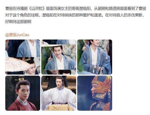 尽管如此,山河枕的阵容还是值得肯定的,包括付辛博、陈乔恩、周洁琼等演员的加盟。令人意外的是,曹骏也在这部剧中出演,饰演“男三号”楚临阳一角。楚临阳出身武将世家,父亲曾在西南边境培养了精锐的“楚家军”,他从小便在父亲的熏陶下,培养出一身过硬的本领。剧中的曹骏有着多个造型,其中既有穿着蓝色衣服的温文尔雅的形象,也有身穿铠甲的英勇武将气质,这样兼具文人和武将风格的角色非常适合曹骏。
