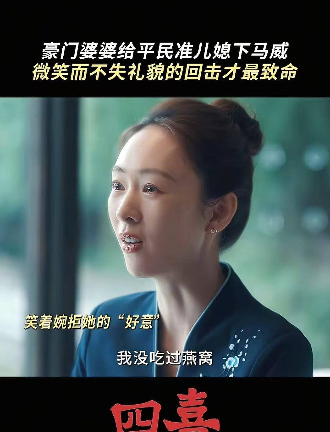 面对婆婆用顶级燕窝羞辱出身的那场戏,她面带微笑,不卑不亢地回应,完美演绎了什么叫做“温柔的反击”。这一幕,注定要成为经典!