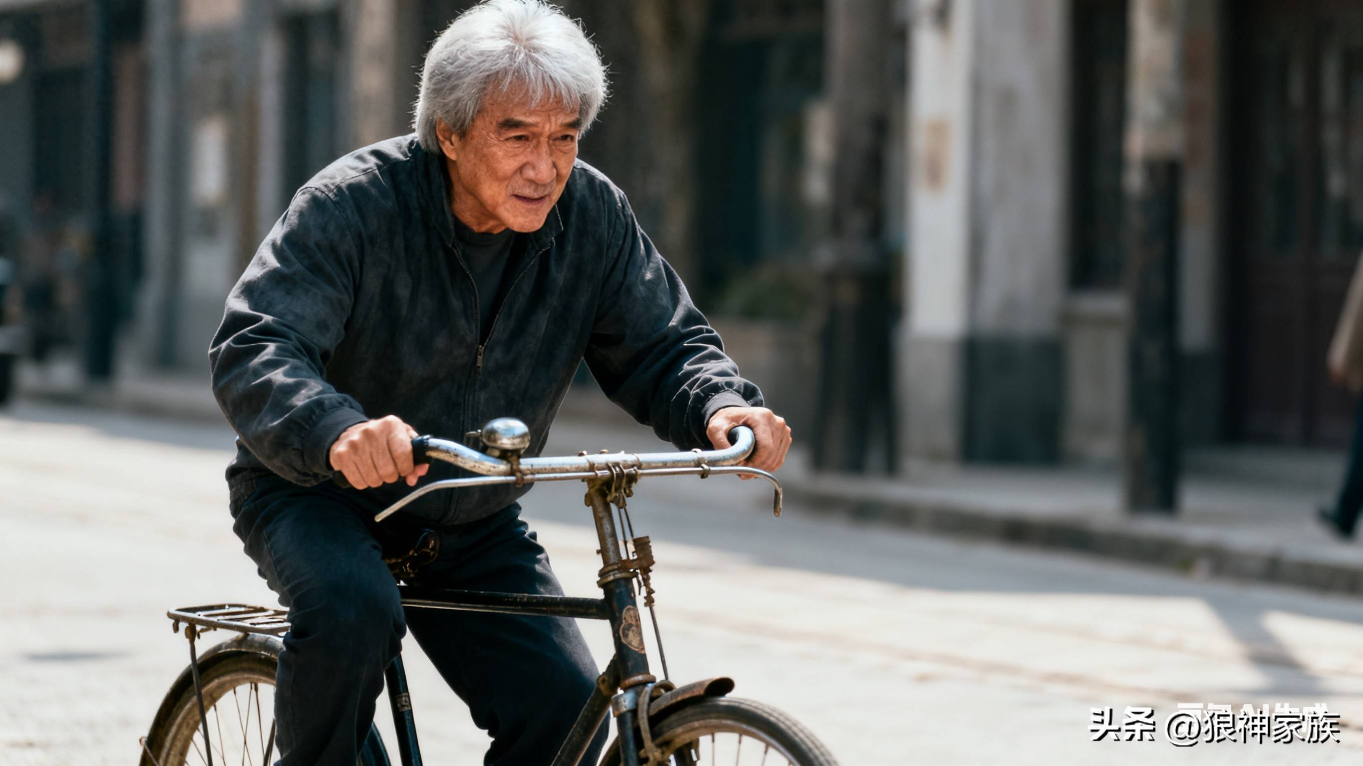 街头那位骑着老式自行车的白发老人,竟然是成龙?71岁的他,头发花白,背微微佝偻,双手紧握车把,动作略显僵硬,缓慢行驶的姿态让路人忍不住反复确认:“这真的是那个曾经的功夫巨星吗?”