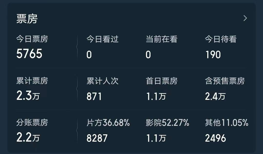 最后是国产电影《寻砖》,该片上映首日票房仅为1.1万元人民币,远远低于前两部影片的成绩。在关注度和期待值极低的情况下,这一成绩几乎可以忽略不计。