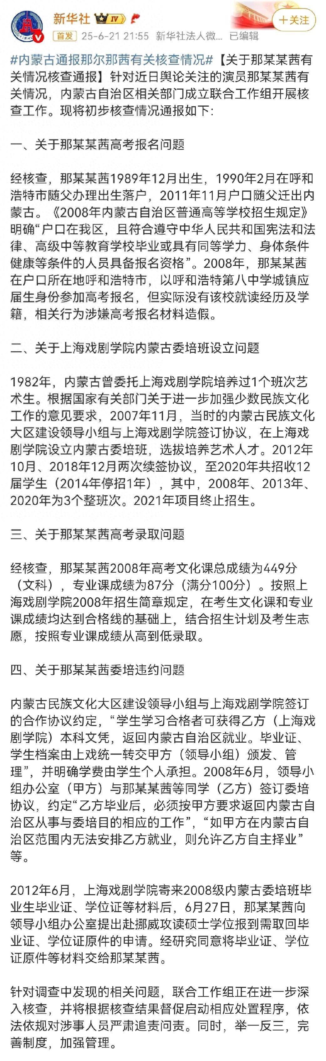 官方通报来了——她的高考报名材料涉嫌造假,一旦查实,上戏的毕业证和学历将被收回,甚至可能面临刑事责任!凉凉,几乎已成定局。