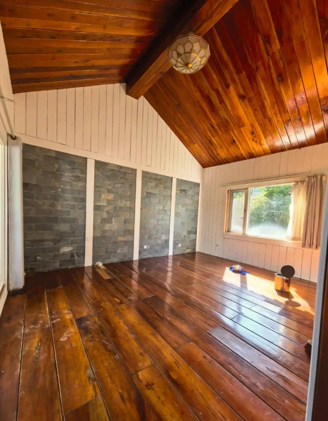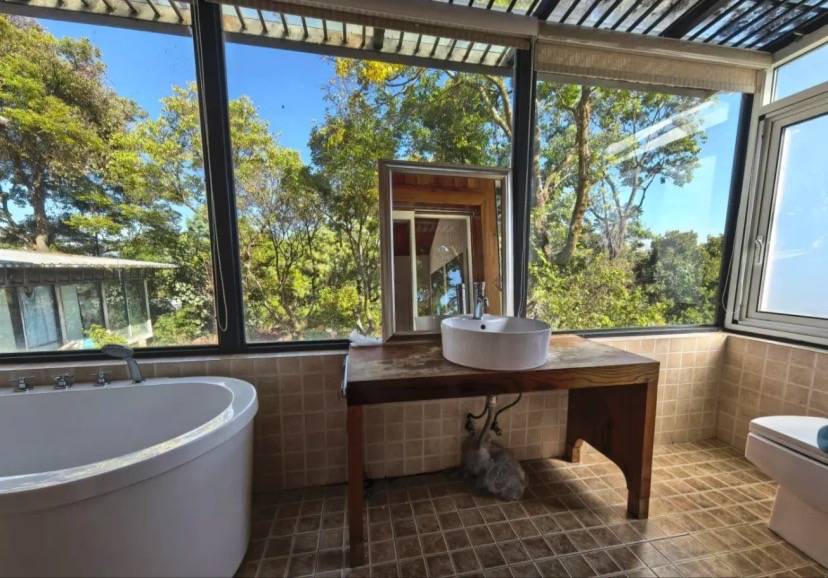 龚琳娜特别注重她的居住环境,她希望每个房间都有独特的气息。无论是装饰品还是选材,她都会亲自挑选,亲力亲为,而不会让别人代劳。她的房间里,窗外的景色宛如一幅山水画,绿色的景色一览无遗。房间的古朴木地板和明亮的大窗户,带来了一种心旷神怡的舒适感。甚至洗手间的设计也充满创意,浴缸就靠着大窗户,木质洗手台增添了一份温润的质感。房顶的三角形设计也显得古朴而独特,这样的造型如今已不常见,只有老式建筑或精心设计的房子才会如此。