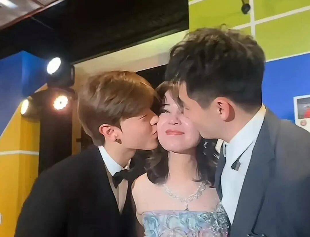 她挽着24岁小男友的手,身边站着17岁的儿子。灯光刺眼,镜头闪烁——就在众目睽睽之下,年轻男人突然伸手轻抚她的小腹。