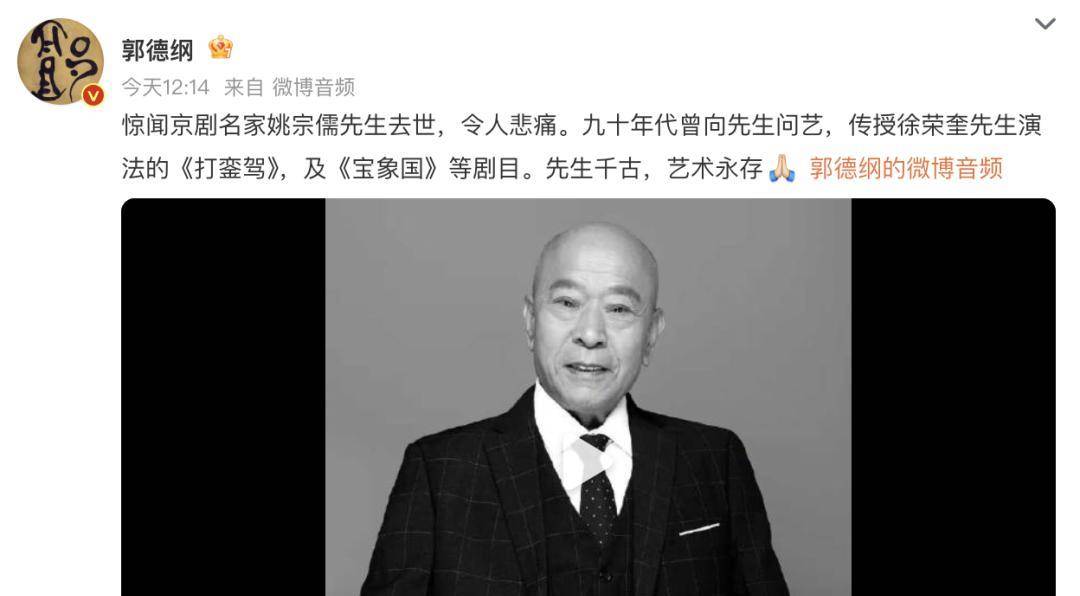 就在昨天,他突然在社交平台发文悼念京剧名家姚宗儒先生。文字不长,却字字戳心——“惊闻去世,令人悲痛”。更意外的是,他首次透露了一段不为人知的往事:九十年代曾向先生问艺,学习了《打銮驾》《宝象国》等剧目。