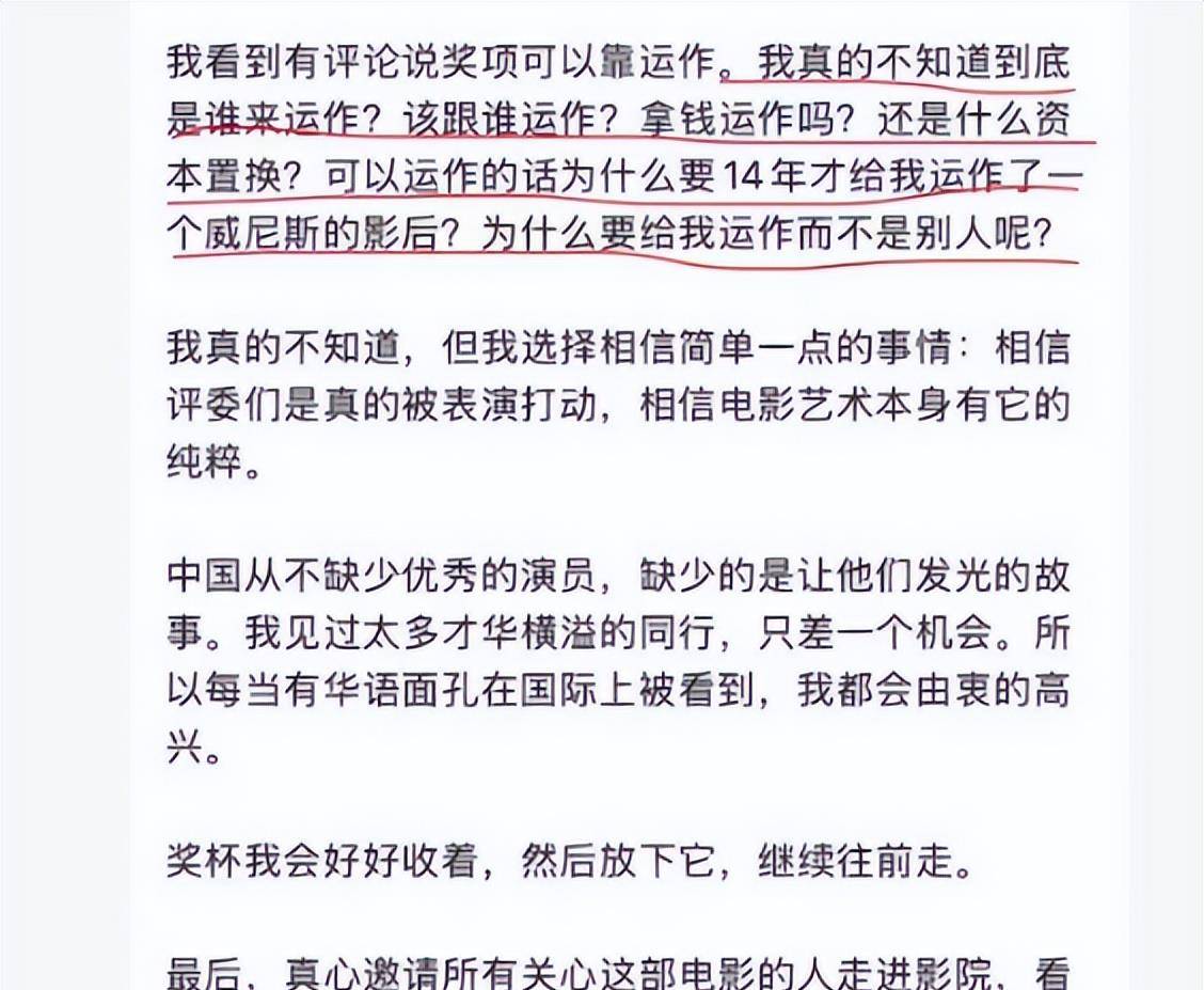 更狠的是,她转头就怼上威尼斯影后辛芷蕾,一句“女演员扯头发就能拿影后”,直接把辛芷蕾的奖杯砸了个稀碎!这已经不是暗讽,是明着扇脸啊!