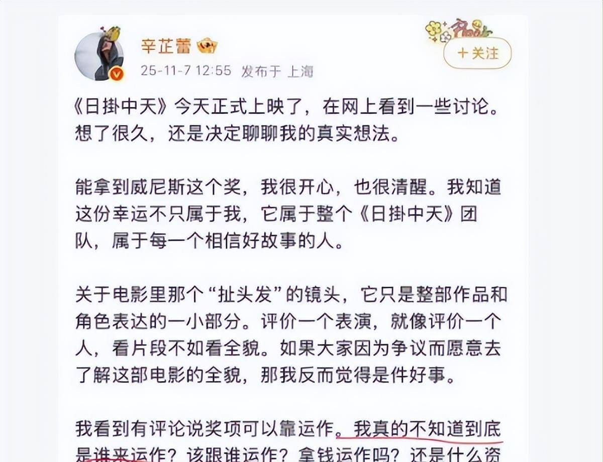 而辛芷蕾的《日掛中天》正在上映,票房却不太理想。这场争议,到底是为艺术发声,还是为票房造势?观众的眼睛是雪亮的,但现在的局面,简直比电影还精彩!