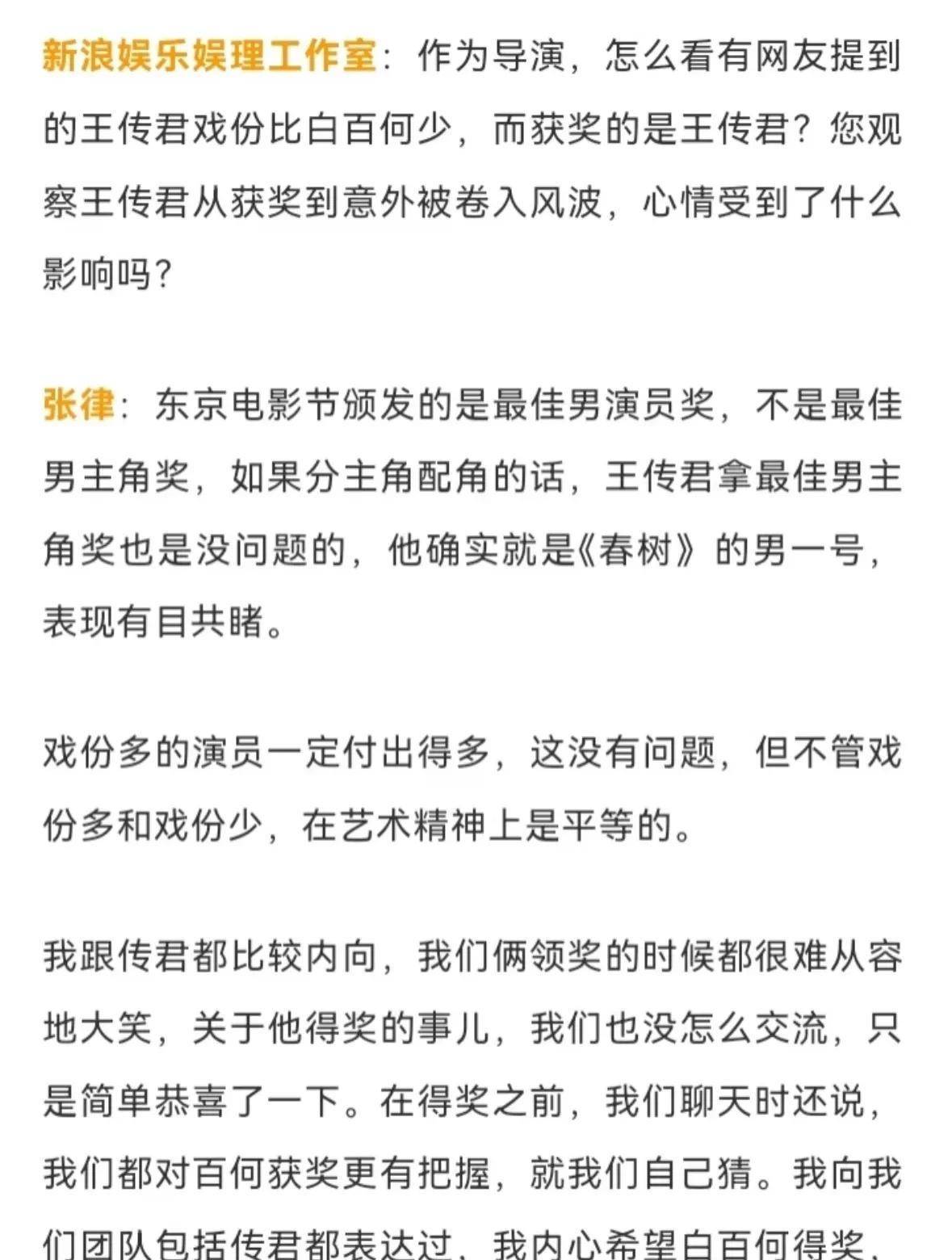 “东京电影节颁的是最佳男演员奖,不是最佳男主角奖。如果分主配,王传君就是男一号!” 但导演也坦言:我多希望白百何得奖,我太爱她这次的表演!这波“又刚又真心”的操作,看呆众人。