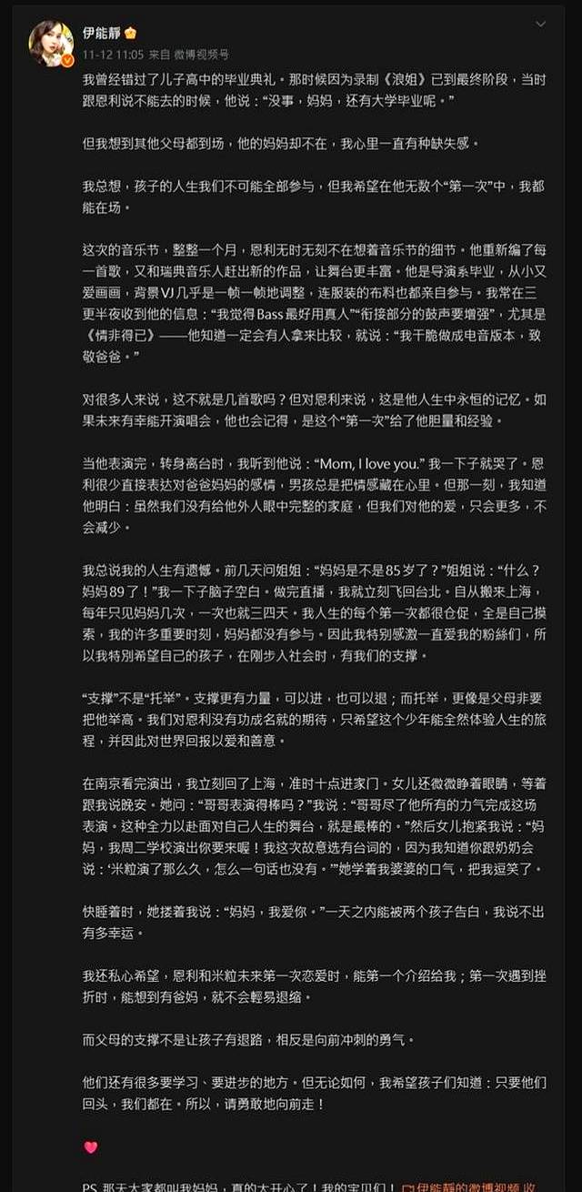 作为母亲,伊能静在这个重要的时刻选择全力支持。