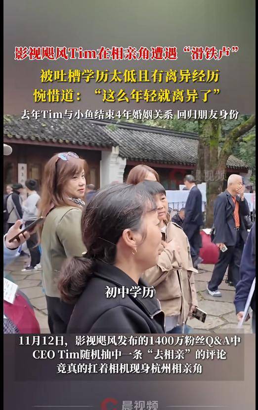 一边是真实人生中体面结束的婚姻,一边是相亲角里因“离异”、“低学历”而被挑剔的剧本。这强烈的反差,不仅瞬间冲上热搜,更引发了全网热议:#影视飓风相亲角遇滑铁卢#、#Tim的隐藏实力有多强# 等话题刷屏网络。
