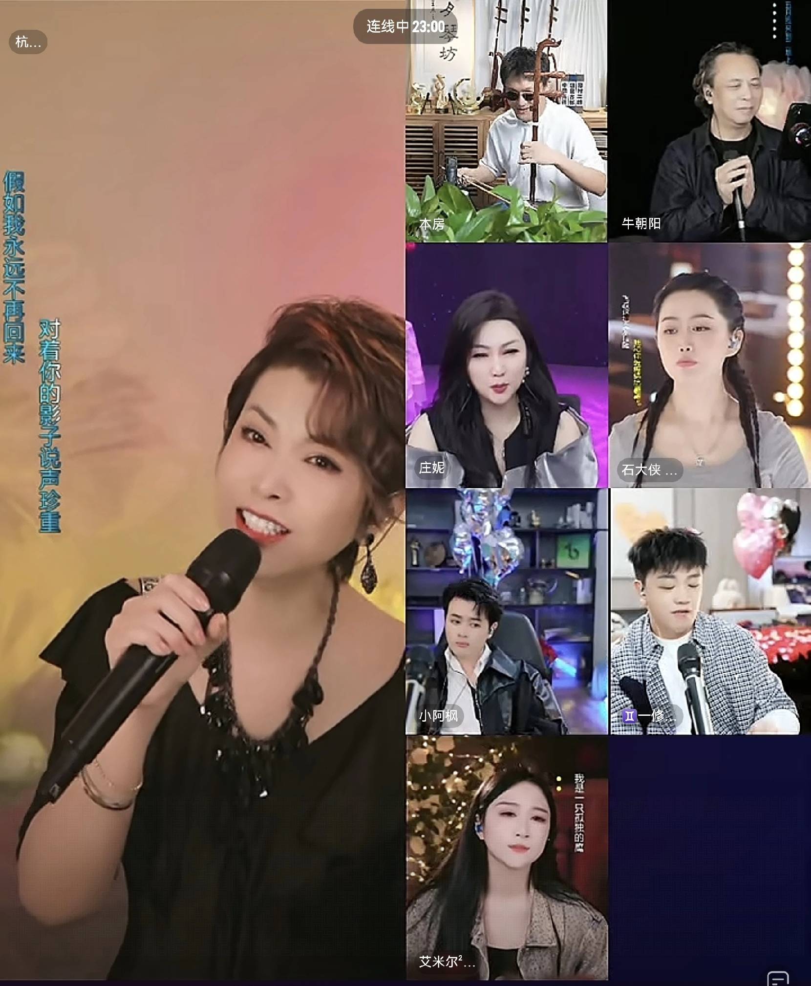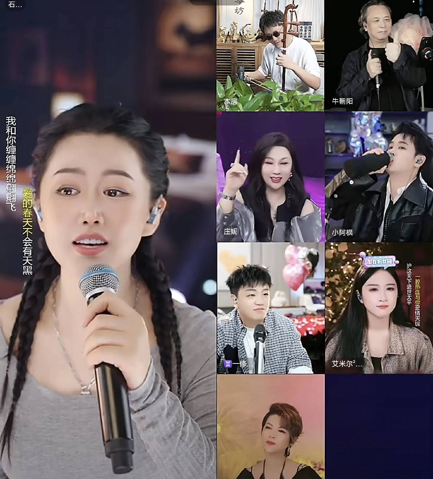 接着,他与石大侠、庄妮、艾米尔、小阿枫、一修、牛朝阳、杭天琪等人连麦组局,展开了精彩的八宫格互动。值得一提的是,这次牛朝阳是首次与二饼连麦。他不仅是《两只蝴蝶》和《窗外》的词曲作者,还以其在音乐界的地位成为了二饼的“老前辈”。这也是牛朝阳首次与其他主播进行连麦合作。