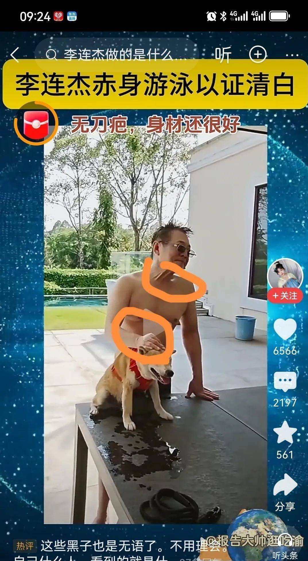 你们是没看到李连杰后来发的那个泳池视频。 老爷子也真是被逼得没办法,直接脱了上衣,一镜到底,在自家泳池边热身、下水,360度展示上身,胸前背后光滑得很,压根没有心脏手术那种吓人的Y字形疤痕。 他还对着镜头说:“人言可畏,活在这个时代要有自己的分析。 ”意思再明白不过了,就是让大家别信那些乱七八糟的。