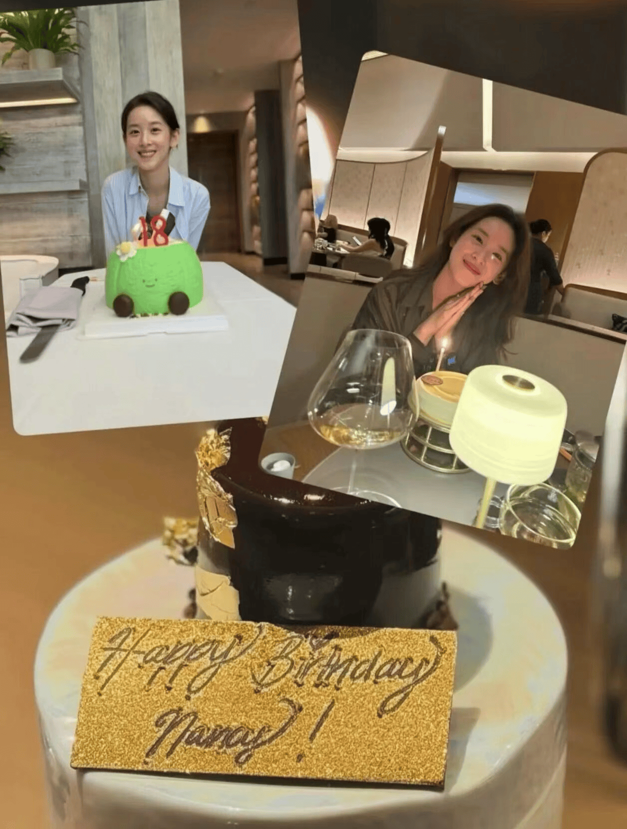 此次分享的照片共有三张。首张照片里,她素颜出镜,颜值依旧在线,悠然端坐在伦敦奢华豪宅的客厅之中,面前摆放着一个绿色的生日蛋糕,上面插着象征18岁的红色数字蜡烛,实在难以想象她竟已是三个孩子的母亲;第二张照片中,她身着华丽盛装奔赴晚宴,在摇曳烛光的温柔映照下,皮肤愈发白皙且透着迷人的红润光泽;第三张照片上,蛋糕上写着“生日快乐Nancy”,幸福的气息扑面而来。
