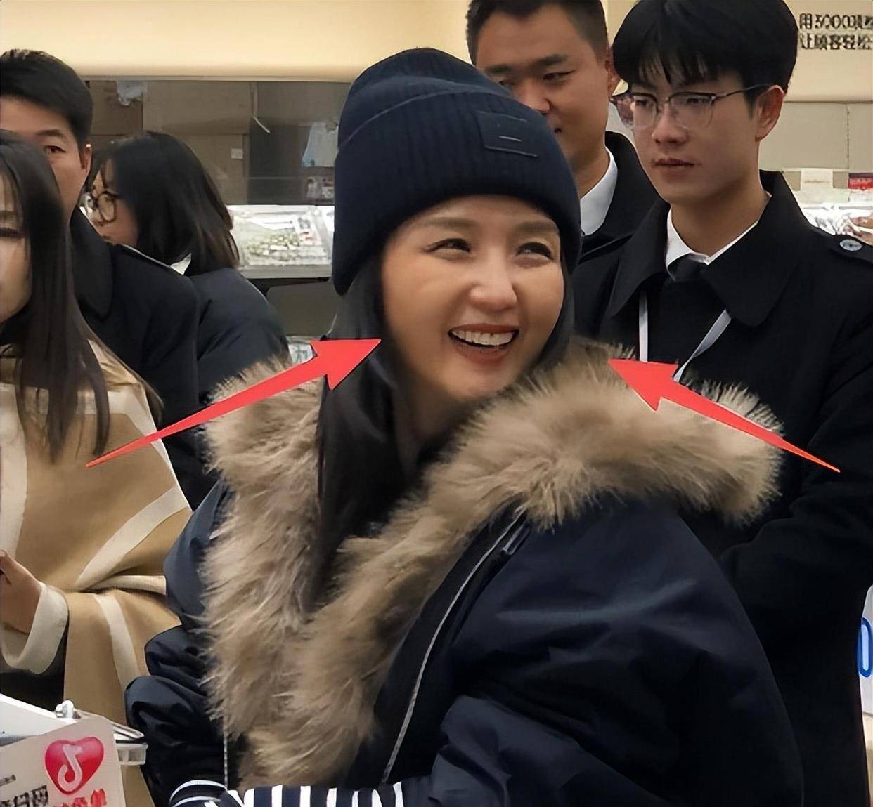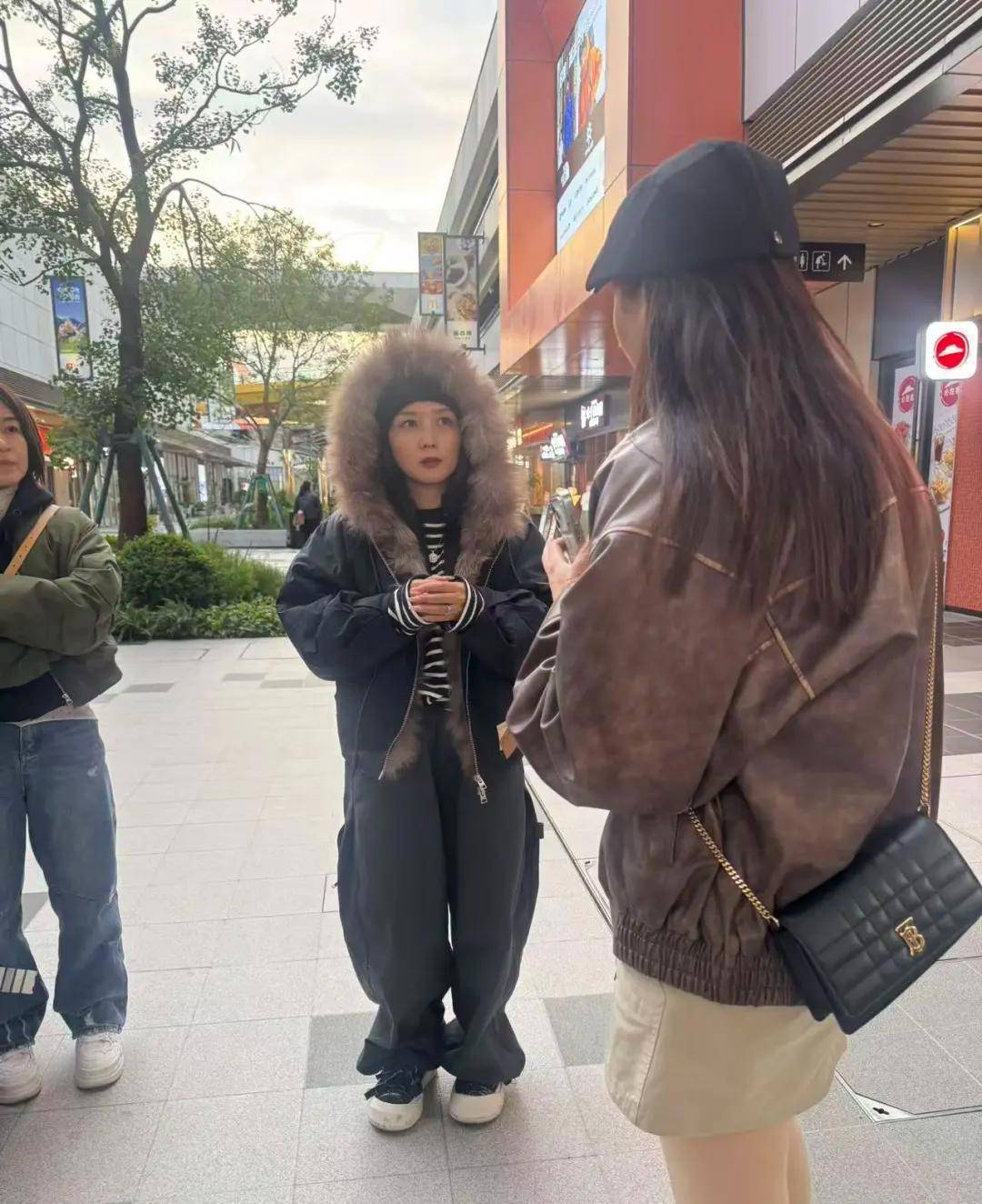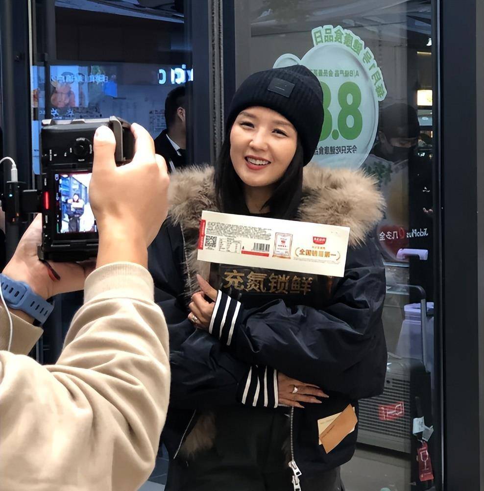 画面里,何洁穿得挺休闲的,黑色棉服配上宽松的休闲裤,头上还戴着帽子保暖,完全是那种路人穿的打扮,挺接地气的。