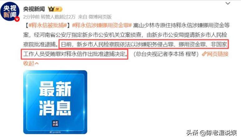 “你知道吗?少林寺方丈释永信,被批准逮捕了!”