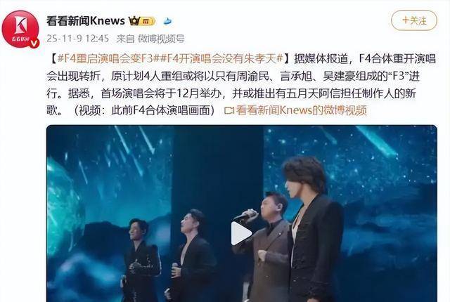 原定于12月举行的F4合体演唱会,因为朱孝天的种种表现和不合群的言论,最终变成了F3,