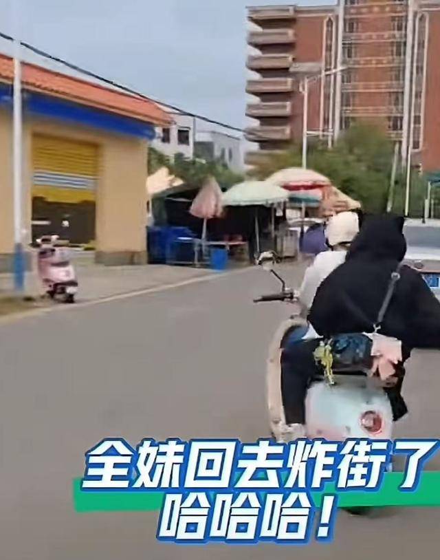 和家里人打过招呼以后,全红婵又和自己的妹妹一起骑着小电驴出门逛街。
