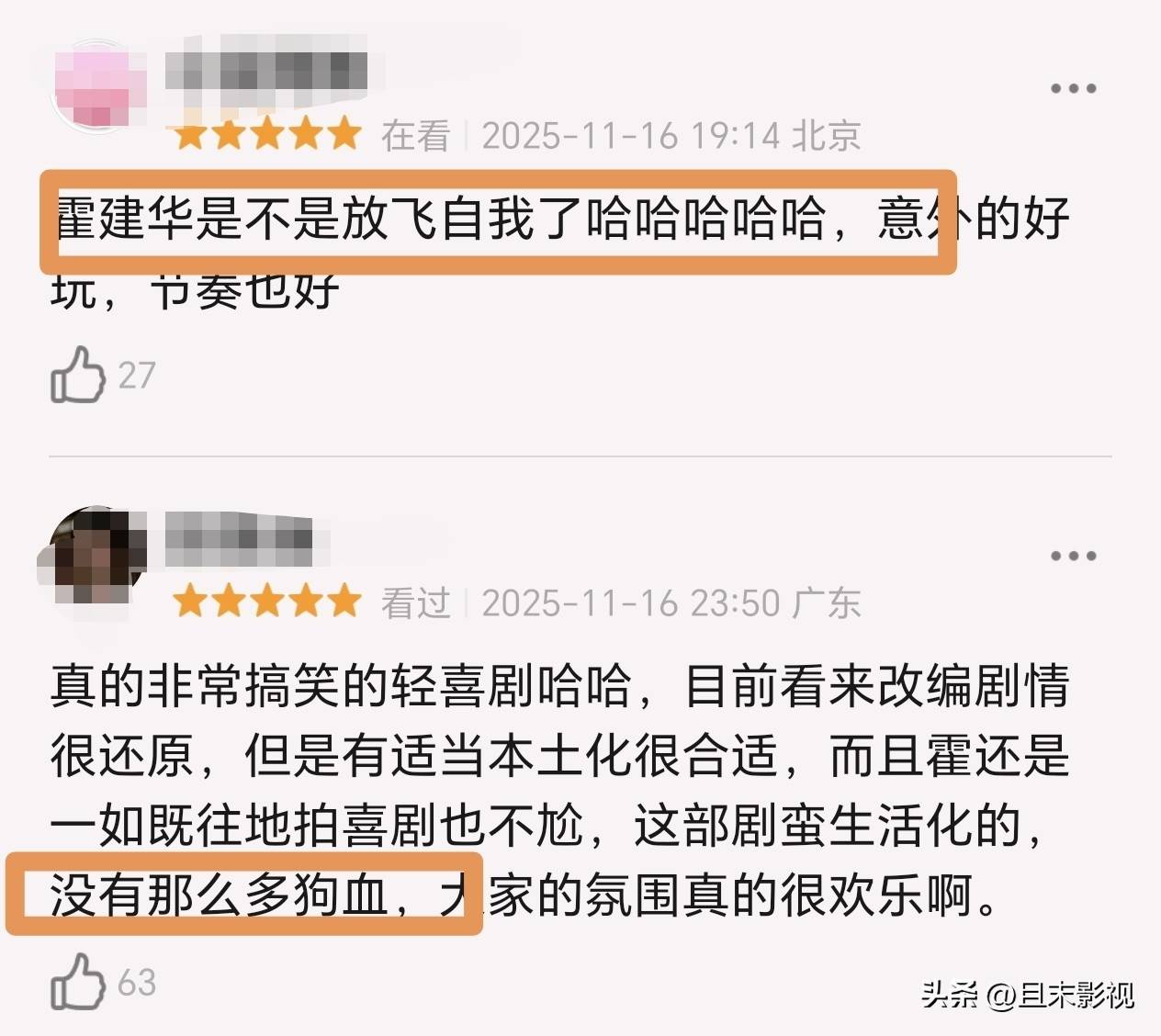 观众的感受无疑是评判一部剧成败的重要标准,尤其是这部剧,观众的反馈尤为突出。豆瓣的评论区几乎被好评刷屏,五星评价层出不穷。一些网友直言:“霍建华放飞自我了”,“没有那么多狗血剧情”。