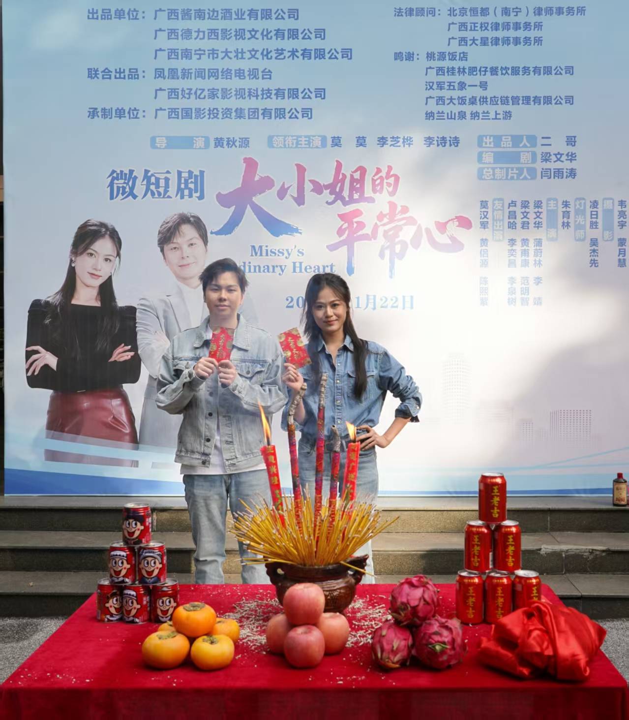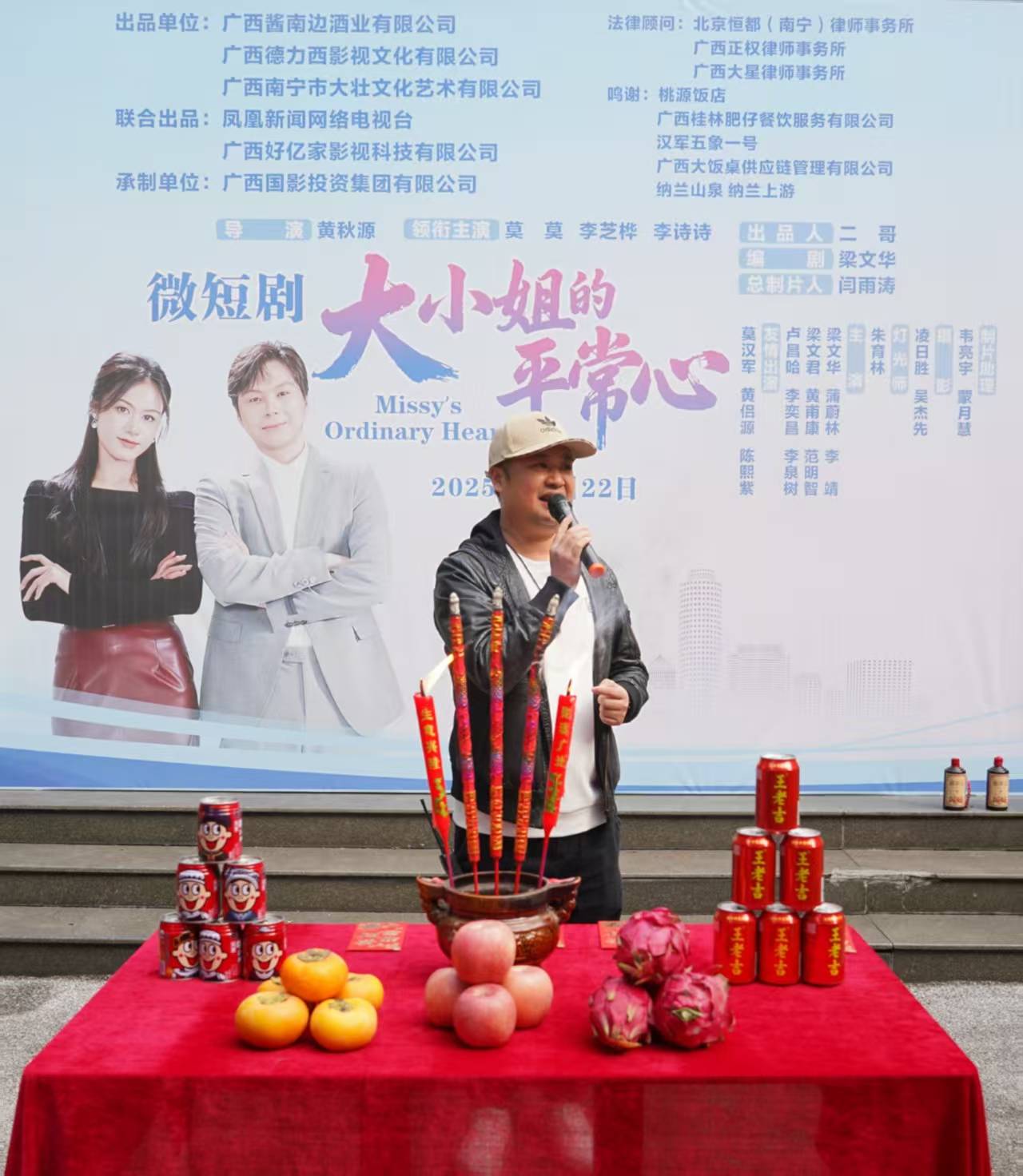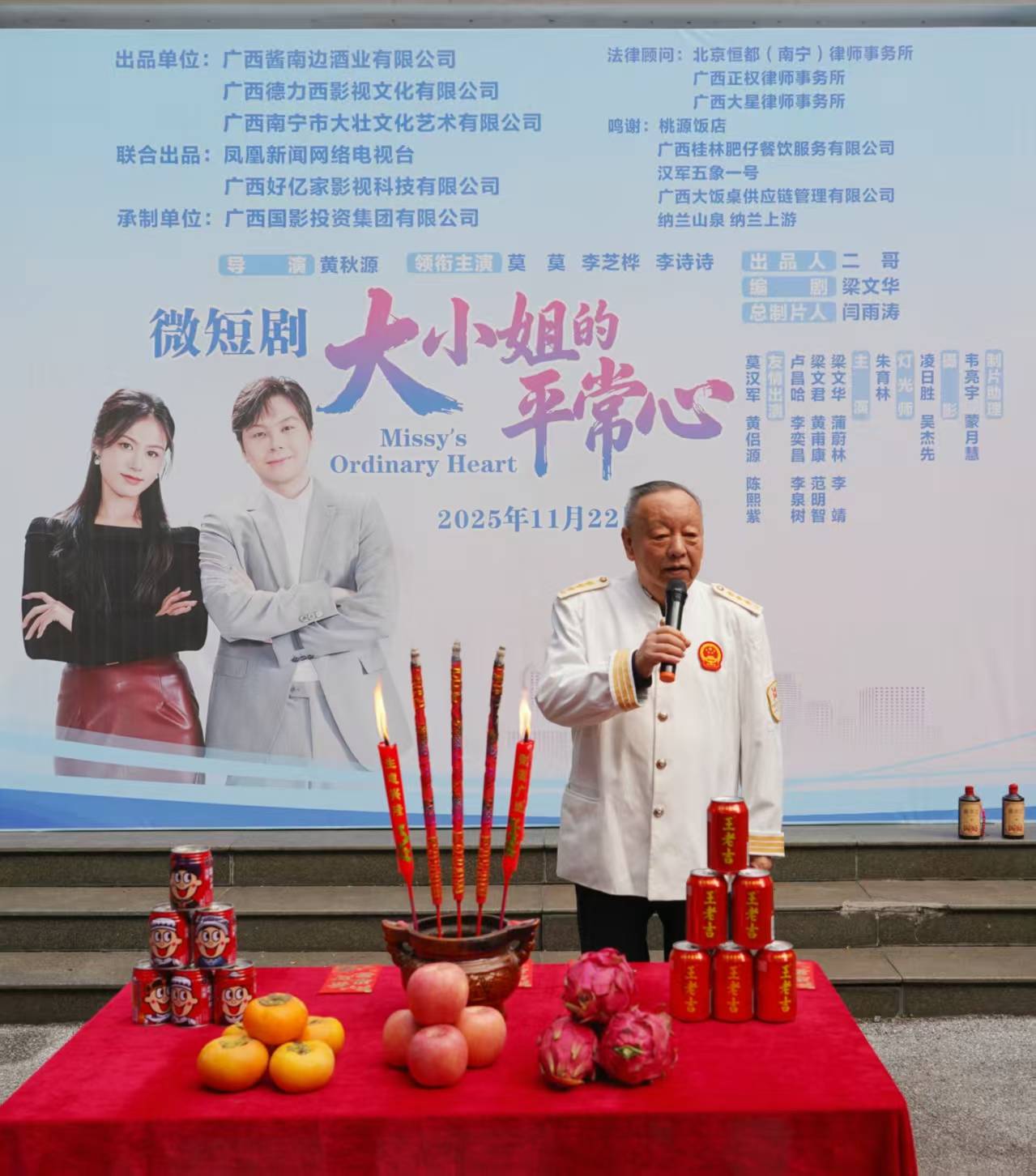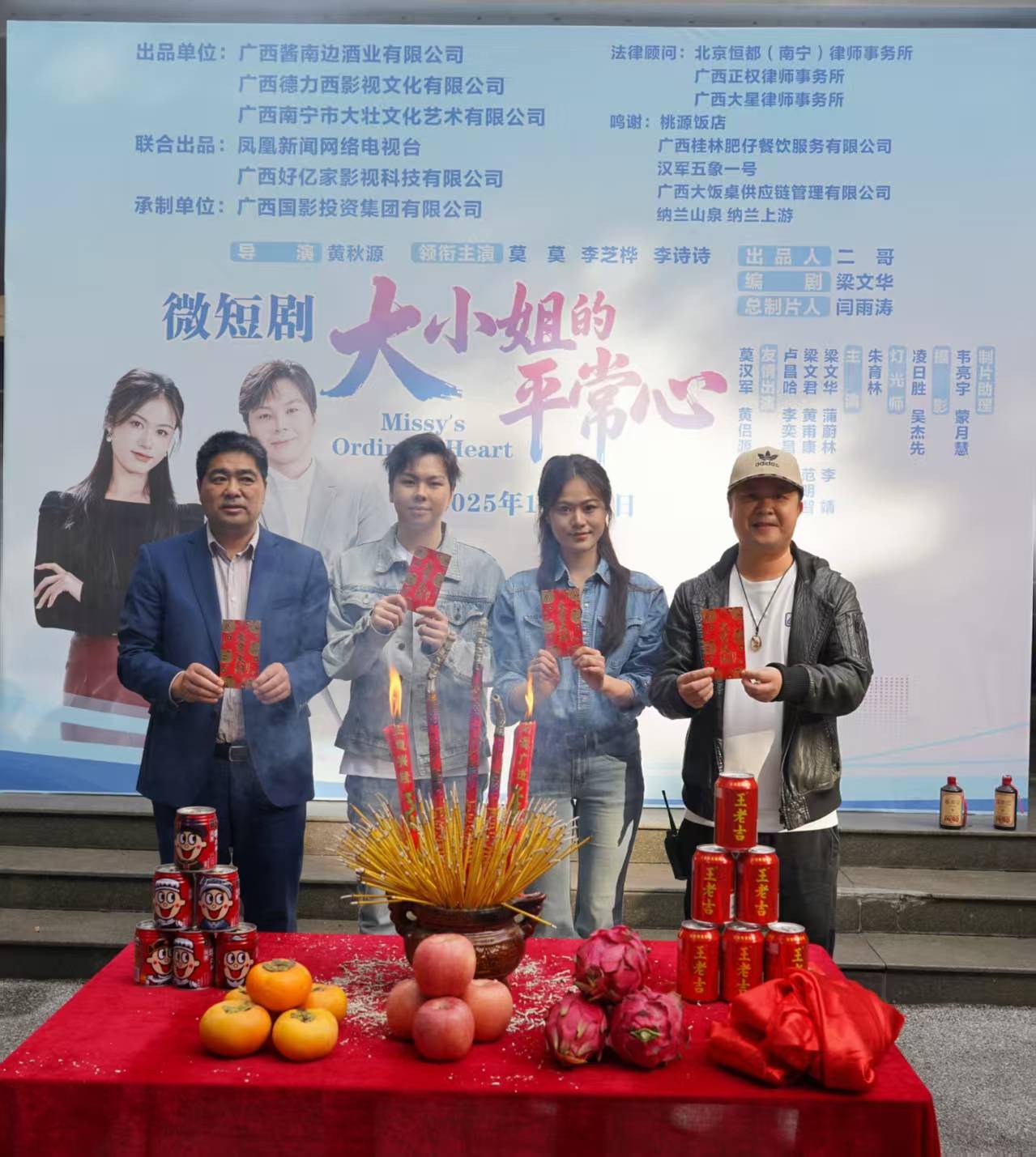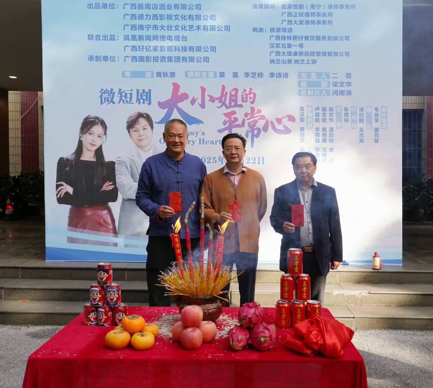 11月22日上午8时,由广西酱南边酒业有限公司、广西德力西影视文化有限公司、广西南宁市大壮文化艺术有限公司出品;凤凰新闻网络电视台、广西好亿家影视科技有限公司联合出品的《大小姐的平常心》在南宁市桃源饭店举行开机仪式。出品单位代表、主创团队及特邀嘉宾悉数齐聚,共同见证这部作品的全新启航。