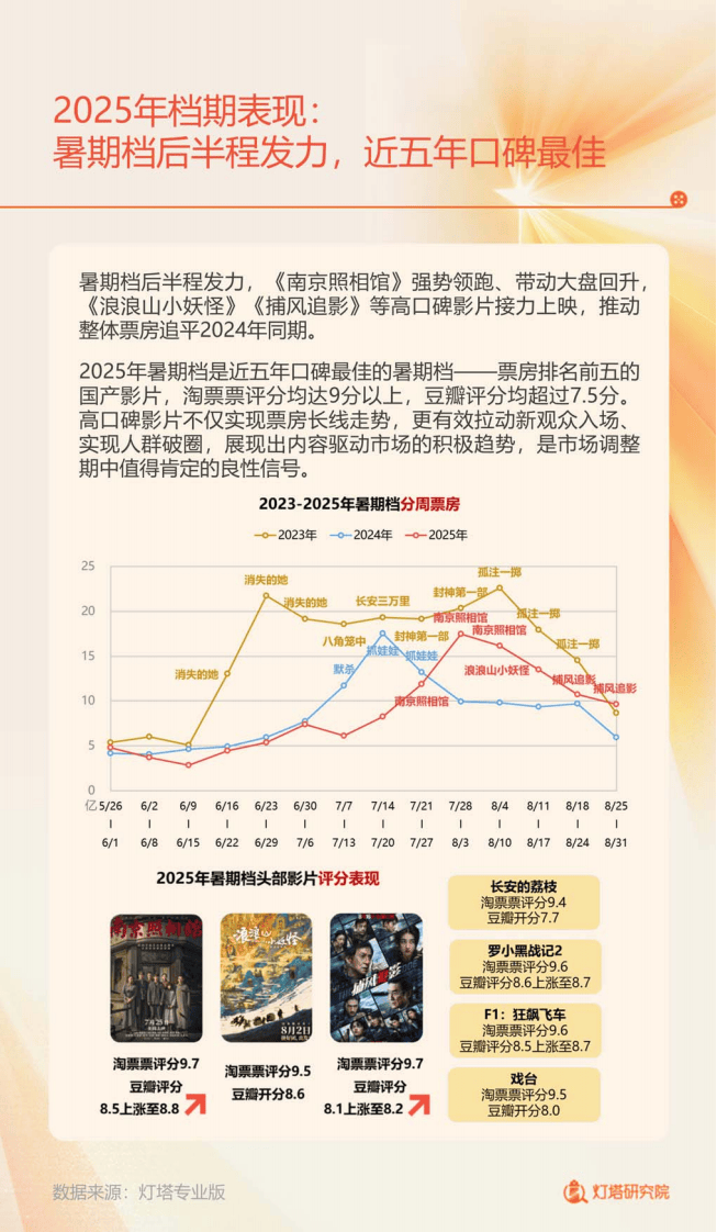 类型片方面,喜剧、悬疑等传统热门类型票房有所下滑,而垂类影片迎来发展机遇,《F1:狂飙飞车》《名侦探柯南:独眼的残像》等凭借精准定位收获市场认可。在海外传播上,《哪吒之魔童闹海》登陆多个海外市场,斩获近5亿人民币海外票房,彰显文化传播实力。