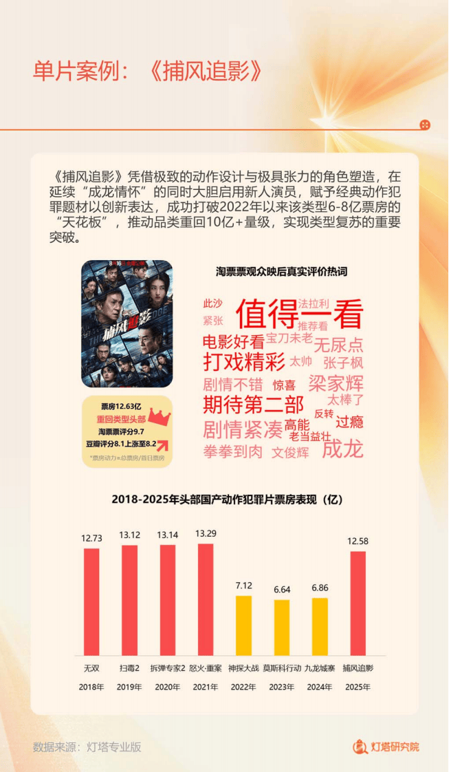 头部影片呈现高度IP化特征,年度票房前十中多部为系列续作或经典IP改编,但IP的生命力最终依赖内容品质。同时,女性观众成为核心消费群体,多部头部影片女性购票占比超六成,年轻观众则成为市场拉新关键,《捕风追影》等影片成功吸引年轻群体回归。