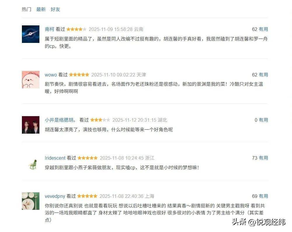 从客观角度看,剧集也存在一些不足之处:节奏把控与爽点密度有待加强,未能充分发挥短剧的叙事张力,尤其是新主角的爱情线过于占据剧情中心,导致经典角色与新角色之间的情感联结较弱,整体更像是普通的穿越剧,而非《还珠格格》的深度改编。