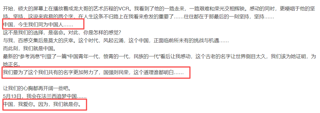 但就在这些旧文之中,竟然还藏着一篇名为《我爱你,中国》的博文。