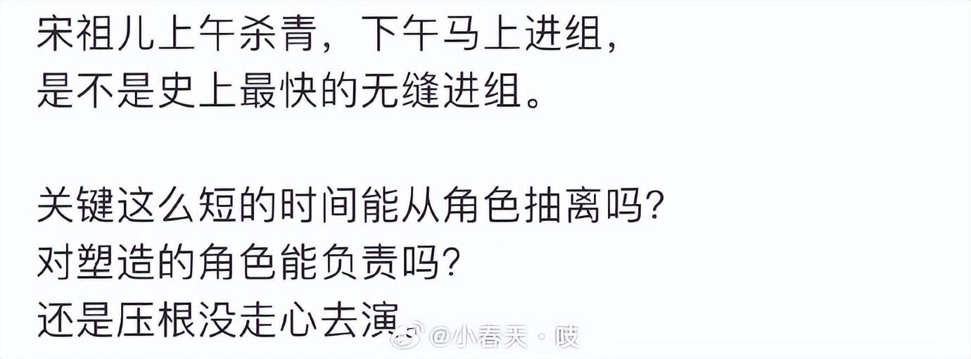 不过,随着热度的提升,也有一些质疑声传来。有网友担心,宋祖儿这么快速地切换角色,是否能从甄嘉芙的形象中彻底脱离出来,影响演技?甚至有人提出质疑:“她这样频繁接戏,是不是为了抢资源,不顾角色的质量?”但她的粉丝们立即为她反驳,指出她过去从乔家的儿女中的叛逆乔四美,到仙侠剧中的清冷神女,每次角色都能完美塑造,从未出现角色冲突的问题。甚至有人晒出了她杀青前的行程表,称她连续拍摄22场戏,常常拍到凌晨,只靠咖啡支撑,“她要是不敬业,怎么会在嗓音沙哑的情况下依然坚持陪粉丝互动?”