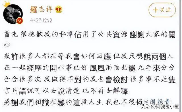 当时前女友周扬青一条长文,把他的“私生活”扒得底朝天,那时候的罗志祥,很快就发文道歉,几乎默认了所有指控。