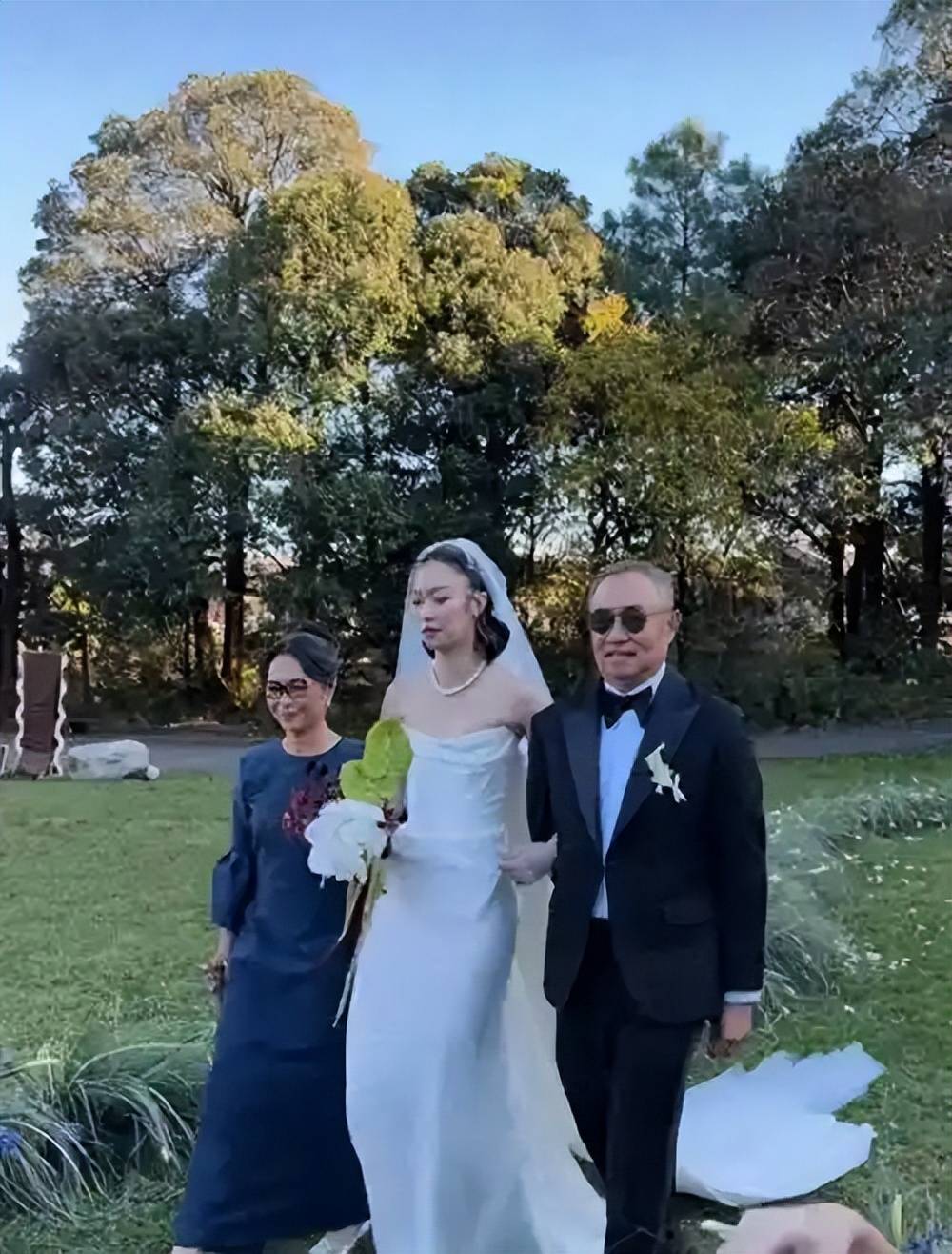婚礼的主角,新娘南风,穿着简洁大方的抹胸白纱,气质优雅,陪伴她入场的是父母。新郎霍启仁则一身黑色西装,挺拔的身姿和温柔的目光,显得成熟稳重。观礼的霍震霆父亲,满面笑容,心情激动,全程不停鼓掌;而母亲朱玲玲则举着手机记录下儿子婚礼的每个珍贵瞬间。尽管霍启山和郭晶晶未能到场,猜测是因工作冲突,但霍家对这场婚礼的支持和喜悦却显而易见。