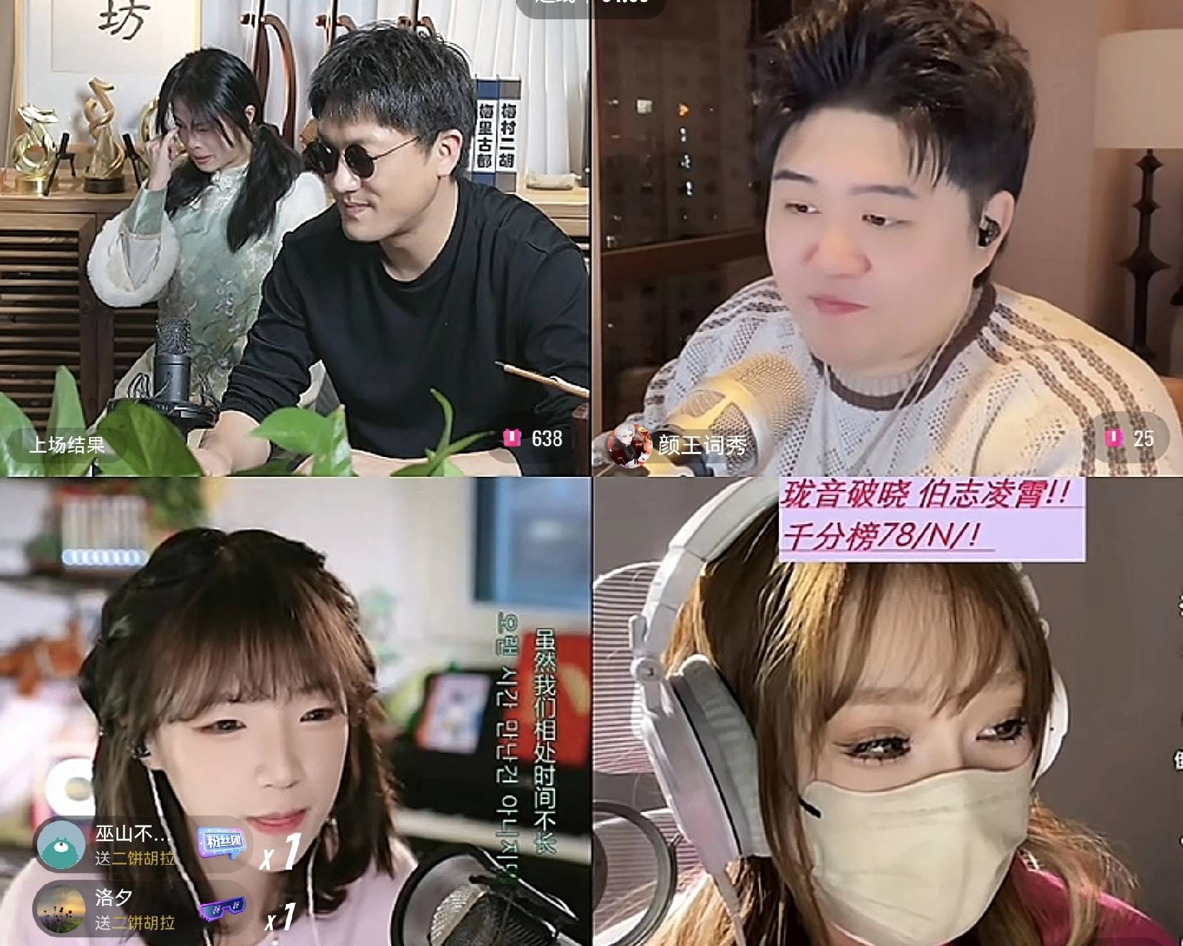 陪伴的时光结束后,二饼力哥开始了新的征程,与颜王词秀、小可楼、珑Cup等主播组队开启四宫格连麦。值得一提的是,珑Cup与二饼力哥的连麦是首次合作,带来了新鲜的互动体验。