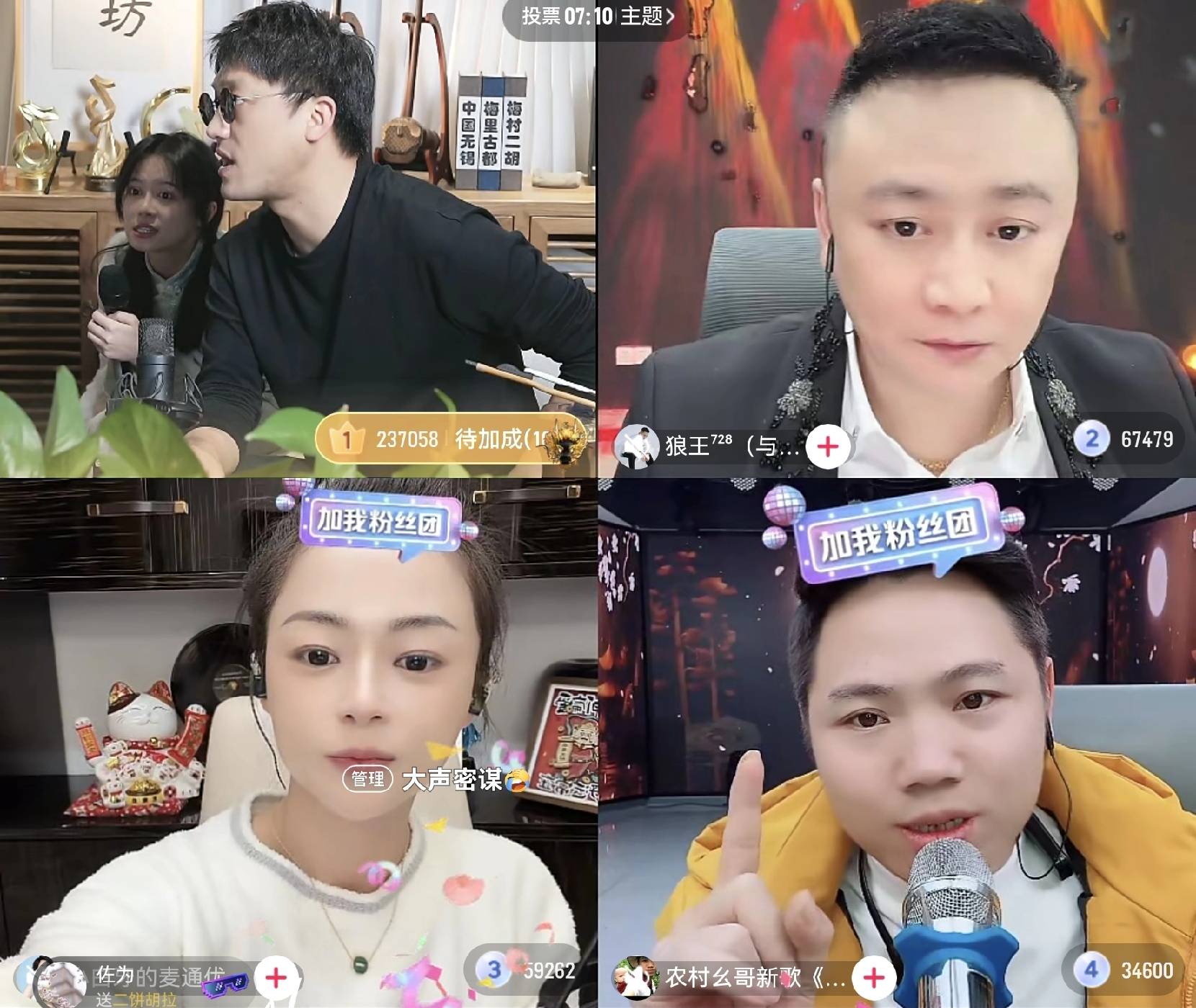 直播中,二饼力哥与小白牙、狼王、农村幺哥等人再次展开四宫格连麦,依旧延续着众筹群狼战术,最终在PK总榜上稳居第二。小白牙在才艺环节中演唱了自己新发行的歌曲《陌路》,旋律婉转悠扬,情感真挚,给人留下了深刻印象,显然这首歌注定会火。幺哥演唱的《既然你已不爱我》则引发了狼王对过往感情的回忆,而二饼力哥再度以《江湖夜雨十年灯》用独特的烟嗓带来了震撼的演绎。最后,狼王的《烟台女人》也在轻松愉悦的气氛中为这场直播画上了完美的句号。