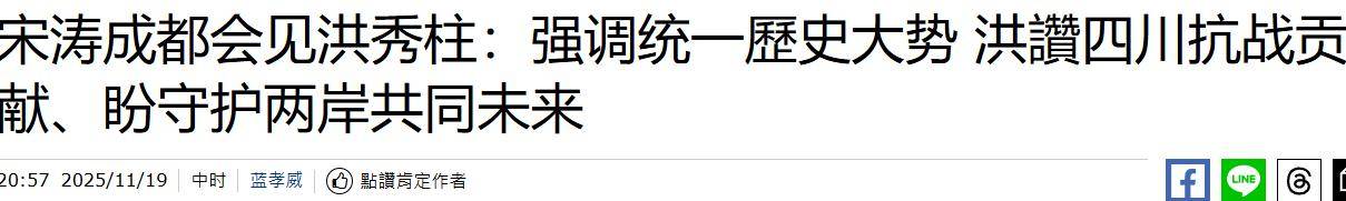 2025年11月19号,宋涛与洪秀柱在成都会面!