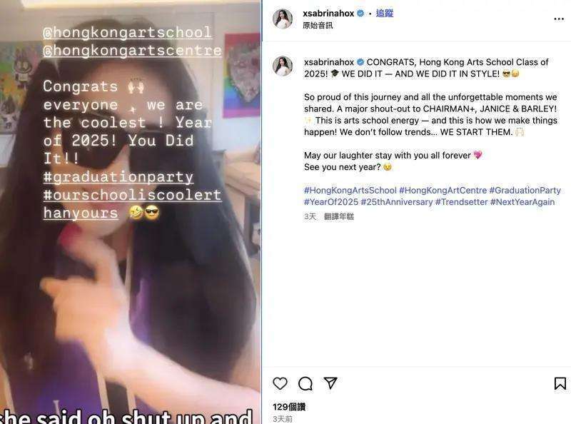 何鸿燊的长女何超盈(Sabrina Ho)不仅是知名艺术从业者,还拥有纽约大学MBA博士学位。最近,她受邀出席香港艺术学院2025年文学士的毕业典礼,并在个人Instagram分享了一段热情四溢的热舞视频,向全体毕业生表示祝贺:“我们做到了!”