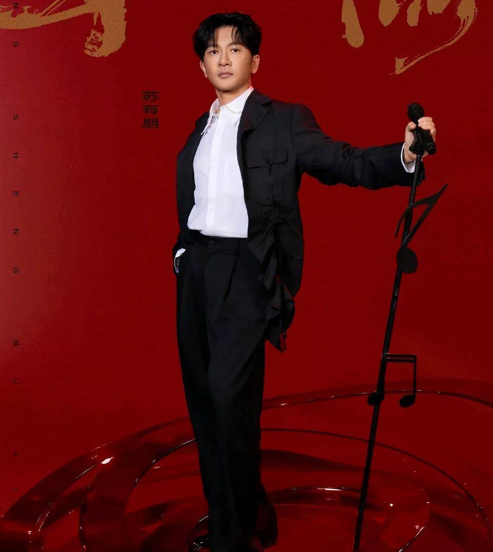 海报设计大气磅礴,展现了节目崭新的面貌。在官宣海报中,苏有朋的形象尤为引人注目,他穿着黑色西装,搭配白色衬衫,展现出迷人的帅气与年轻气息。手握话筒,他的形象无疑代表着他作为歌手的身份,充满了自信与力量。海报上的苏有朋,神采奕奕,眼神坚定,仿佛预示着他在节目中的强势表现,带给观众无限期待。