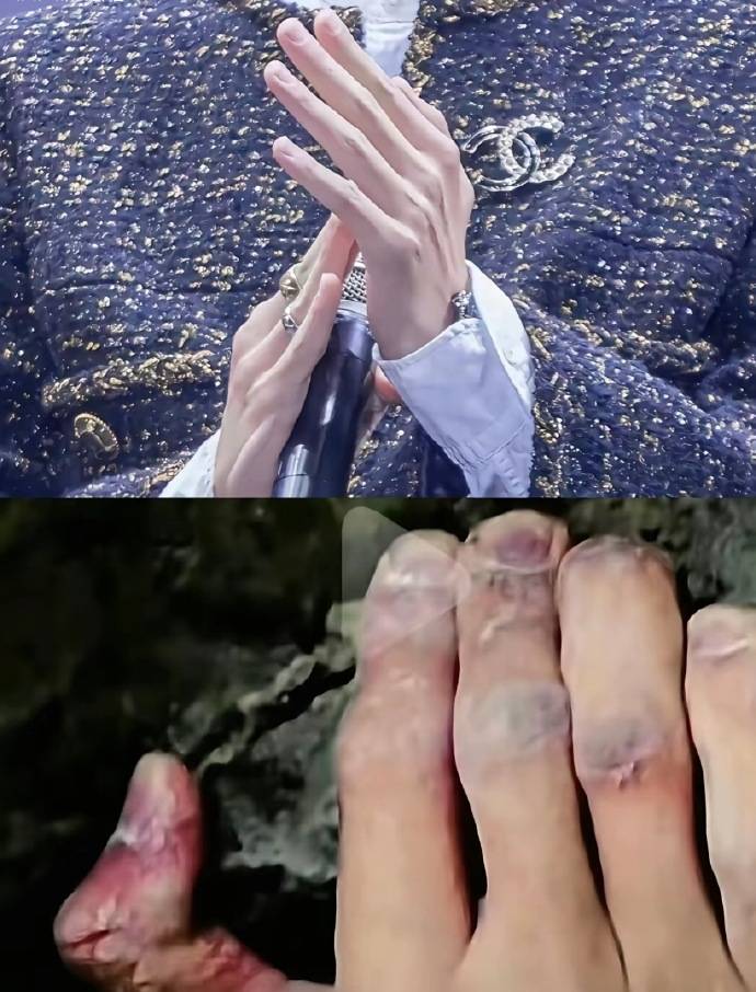 然而,伤痛从未让王一博停下前进的脚步。跨年舞台表演时,脚踝扭伤的他,凭借着顽强的毅力,仅靠上半身发力就完成了高难度舞蹈动作;在电影《热烈》的拍摄过程中,脚腕扭伤的他没有声张,一直坚持到拍摄结束;巴黎时装周上,尽管腿部不适,他依然完美呈现了演出。当脚趾肿胀时,他依旧继续着攀岩训练,那句“痛苦会在登顶后消失”,展现出了他乐观坚韧的人生态度。他将生理上的痛苦升华为精神上的动力,粉丝们也早已注意到他手脚上布满的老茧与结节,这些都是他长期坚持、不断突破自我的有力证明,每一道痕迹都诉说着他的敬业与执着。