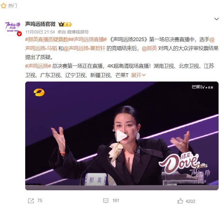 《声鸣远扬2025》自从开启直播以来,迅速跃升至收视率和热度的第一位,令许多人始料未及。尤其是节目组邀请了一位拥有20亿单曲播放量的歌手来录制,然而最终却被那英的风头所盖过。那么,究竟发生了什么呢?