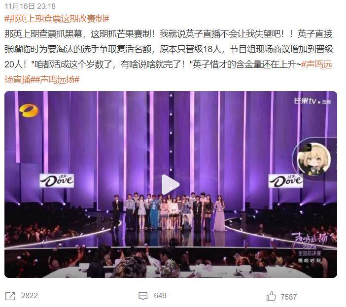紧接着,在该期节目中,那英再次成为焦点。她直接对《声鸣远扬2025》的赛制进行了修改。本该进入第二轮比赛的18位选手,在表演结束后,那英提议让更多选手晋级,提出要将晋级名额从18位增加到20位。面对这一改变,节目组经过商议后最终同意了她的提议。那英随后表示:“咱都活到这个岁数了,什么都说了算!”这番话更是引发了观众的广泛讨论。
