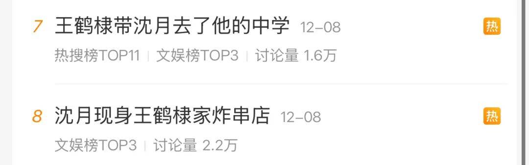#王鹤棣沈月白月光杀回湖南卫视# #王鹤棣沈月现实版尼克朱迪# #王鹤棣带沈月去了他的中学# #沈月现身王鹤棣家炸串店# #王鹤棣沈月 每隔三年be转he# ...一个接一个的双人热搜不停歇。