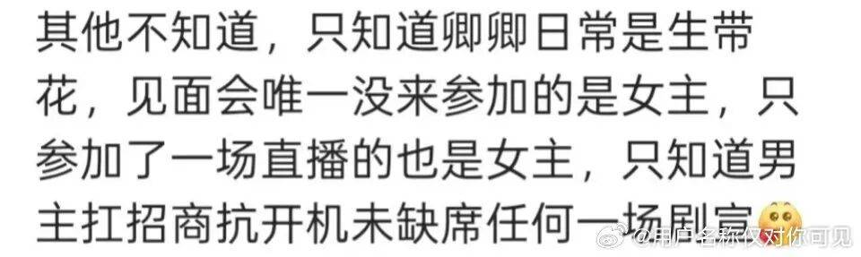 连当年双方缺席合体活动的旧怨都拎出来吵,这边甩锅女方宣发不给力、合体活动掉链子,全程拖了剧集热度的后腿。