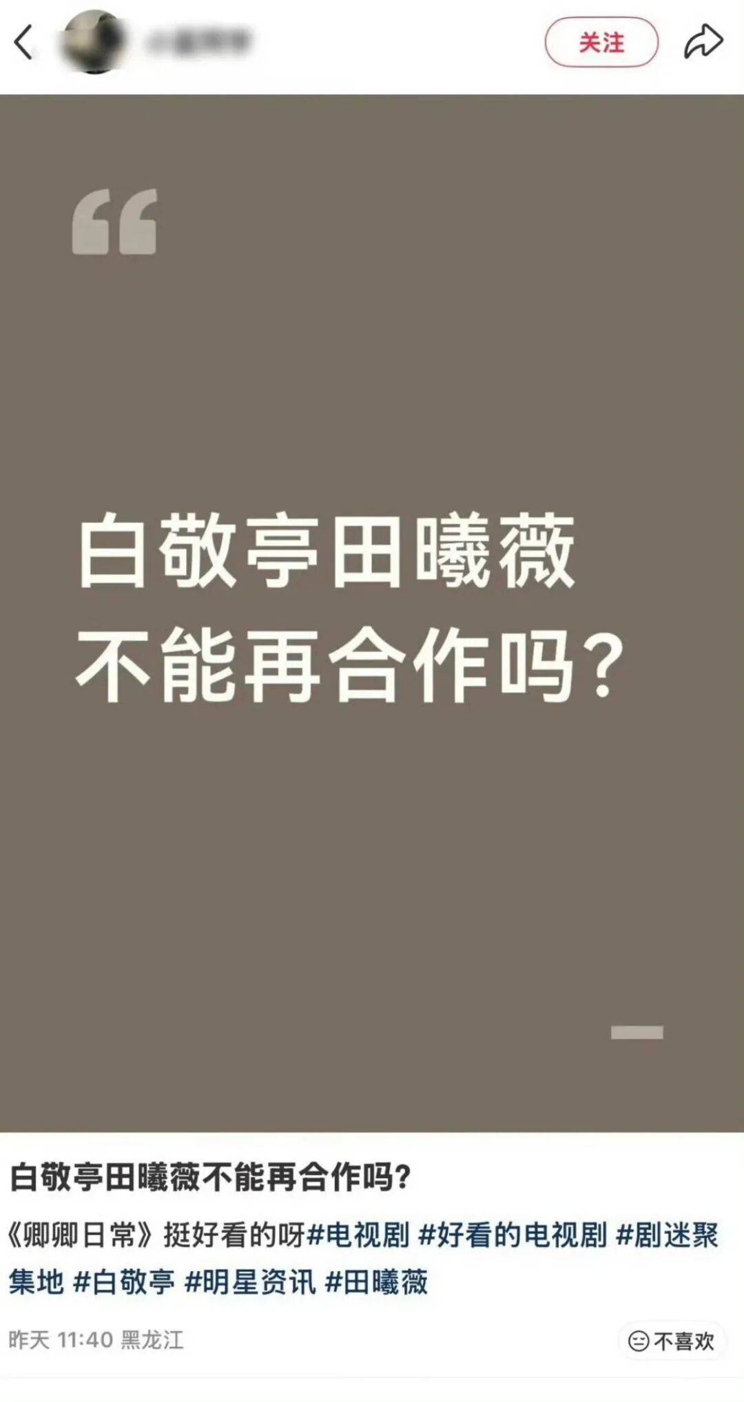 明明没有任何实质合作消息吧?不过是有网友发了个标题为“白敬亭田曦薇不能再合作吗”的帖子而已,两家粉丝就直接拉开架势互撕,把三年前《卿卿日常》的旧账翻得底朝天。